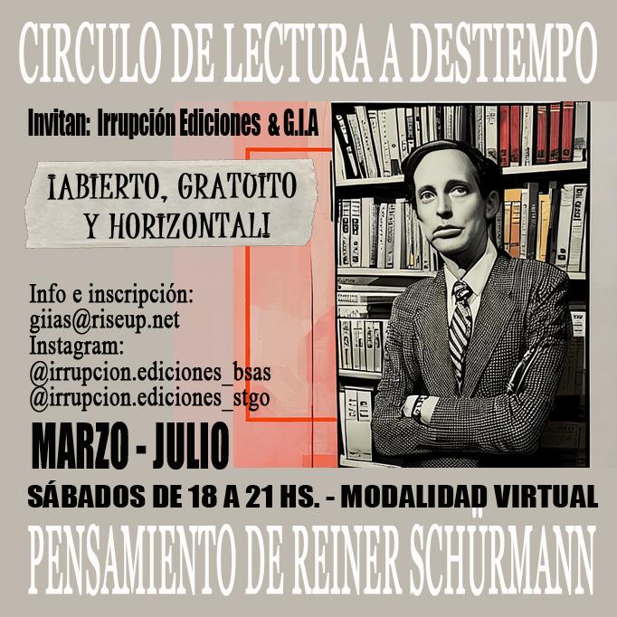 Irrupción ediciones & G.I.A (Grupo intempestivo acéfalo) les invita a nuestros círculos de lectura a destiempo; gratuitos, horizontales y abiertos.